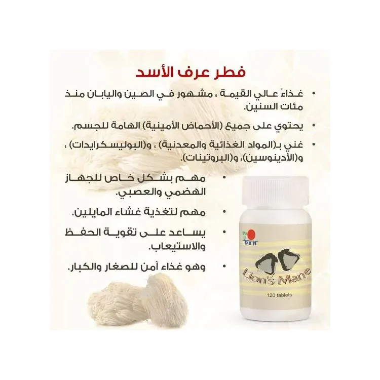 عرف الأسد هو فطر كبير الحجم أبيض اللون يتخذ خلال نموه شكلاً شبيهاً بشعر رأس الأسد. ويتميز هذا الفطر بخصائصه العلاجية والغذائية كما هو معروففوائد فطر عرف الأسد :.1- تحفيز وتنشيط وإصلاح خلل الخلايا العصبية، وبالتالي فهو مضاد للزهايمر وأشكال العتة الأخرى.2- يقوي الجهاز العصبي بصفة عامة، ويعالج الأمراض الناتجة عن تضرر غشاء المايلين المُغلف للخلايا العصبية، مثل: التصلب المتعدد (فقدان التناسق الحركي)، الآلام العصبية، وآلام الأعضاء الطرفية، ويخفف من حدة ألزهايمر ومرض باركنسون، حيث أنه يعمل على تنشيط النبضة العصبية التي تمر عبر النيرون، مما يكون له أفضل الأثر على أداء الخلايا العصبية بصفة خاصة، والجهاز العصبي بصفة عامة.3- سرطان المعدة والأمعاء (سرطان الجهاز الهضمي).4- تحفيز جهاز المناعة والأجهزة الحيوية لاحتوائه على السكريات المتعددة والبولي ببتيد.5- مكافحة الأورام6- عسر الهضم.7- ضعف الأعصاب.8- ضبط مستوى السكر بالدم.9- ضبط مستوى الكولسترول.
