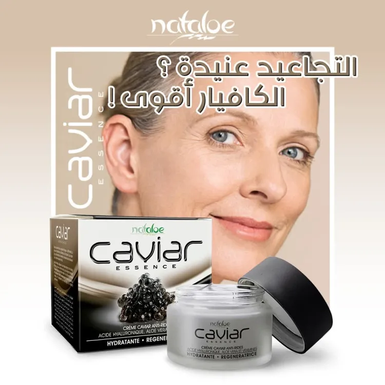مهما كانت التجاعيد عنيدة، كريم الكافيار يتحدّاها!بتركيبته الفاخرة والمغذية، يعيد لبشرتك نعومتها، إشراقتها، وشبابها. استمتعي بنتائج تلمسينها من أول استعمال.قوة الكافيار... سر الجمال الحقيقي.Aucune ride n’est trop tenace, le soin au caviar les défie toutes !Grâce à sa formule luxueuse et nourrissante, il redonne à votre peau douceur, éclat et jeunesse.Ressentez la différence dès la première application.La puissance du caviar... le vrai secret de beauté.