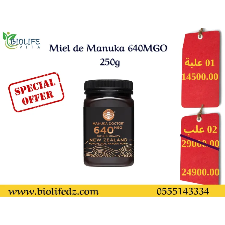 Miel de Manuka Miel de Manuka 340 MGO -500g DZD16,500 ✔️ يفيد في دعم وقتل البكتيريا وحماية الجسم من الأضرار التي تسببها العدوى.✔️ يساعد في الحد من التهاب القولون التقرحي✔️ يفيد في دعم جدار الأمعاء والوقاية من قرحة المعدة والتهابها.✔️ يفيد في منع تسوس الأسنان والتهاب اللثة.✔️ يساعد في التئام الجروح وترميم الحروق.✔️ يساعد في تخفيض مستوى السكر في الدم.✔️ يساعد باستخدامه كمضاد للالتهاب والأكسدة والفطرية.✔️ يفيد... Add to cart