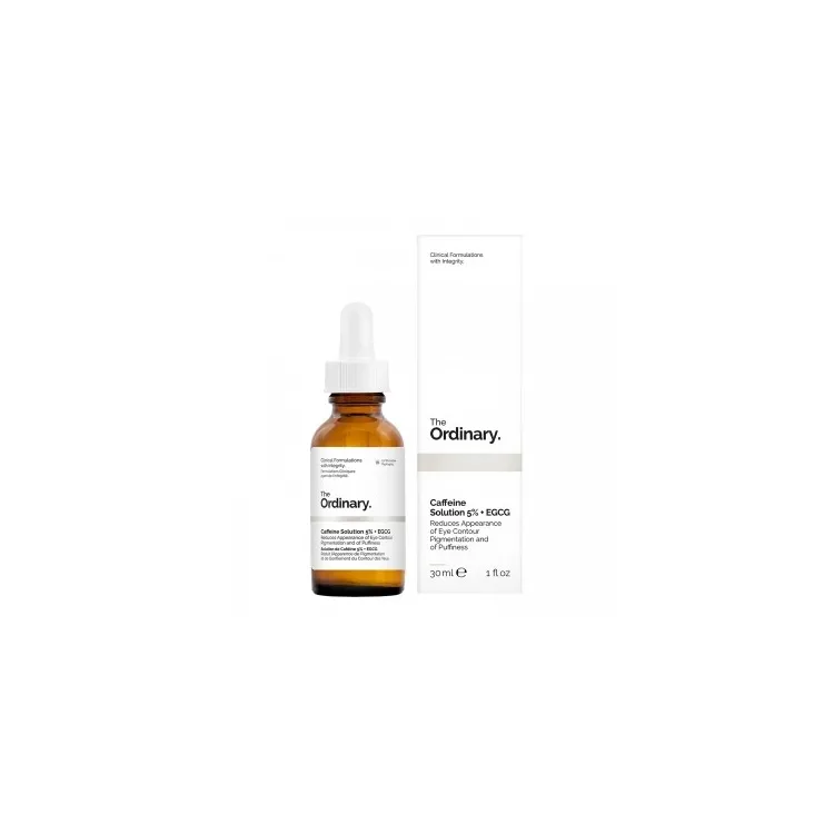 The Ordinary Caffeine- 30ml❤️😍سيروم ordinary للهالات لعلاج الهالات السوداء تحت العين التي تسبب مشكلة مزعجة وهنا يأتي دور caffeine the ordinary الرائع من الشركة الكندية The Ordinary،فهو لا يعمل فقط على تقليل مظهر الهالات السوداء بل يعمل أيضا على تقليل الانتفاخ تحت العين أو ما قد يسميه البعض بـ ” جيوب العين ” وهو ما يضايق الكثير من النساءCaffeine Solution 5% + EGCG ” هو السيروم الأفضل للعين وذلك لأنه يأتي بتركيز نسبة كافيين عالية وهي 5% كما يحتوي أيضا على EGCG المستخلصة من أوراق الشاي الأخضر والتي تزيد فعالية الكافيين وتدعم محيط العين وتحميه من أضرار أشعة الشمس فوق البنفسجية.ما هي فوائد ذا اورديناري للهالات ؟👋👇💥تدعم الدراسات أهمية الاستخدام الموضعي للسيروم على ازالة الهالات السوداء.ذا اورديناري كافيين يساعدك على التقليل من مظهر انتفاخ تحت العين.سيروم الكافيين للهالات السوداء لا يتسبب لكي في ظهور أي حساسية.💯💖أهم ما يميز سيروم الكافيين من ذا اورديناري أنه خالي تماما من : الكحول – الزيوت -السيليكون –